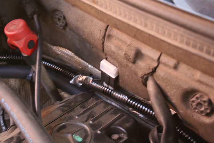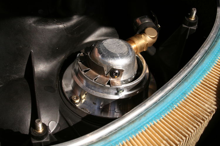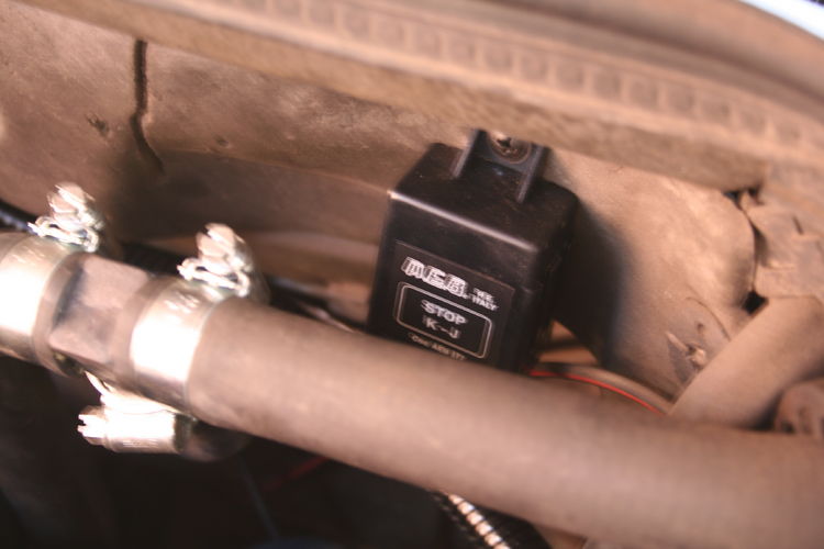 Stako toroidal tank upright in boot where the spare wheel was. Diameter 625mm, width 225mm. Working capacity: 45 litres. The plastic strap that you see around the circumference holds the tank down and is bolted through the floor under the tank. It is my intention to cut away some of the plastic webbing on the cover panel (that you can see lying down) so that the cover shuts more completely. (note: I have ground away some of the plastic webbing and it shuts better, but not completely, now.)